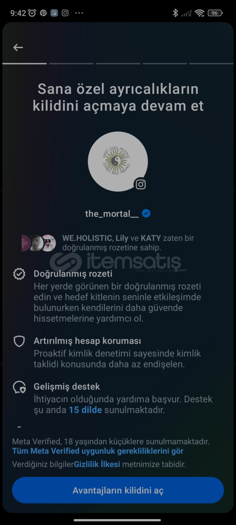 Hesapların kurulum yılları: 2015Takipçis sayısı 292 organiktir.Kurucu e-posta ve şifresi , kullanıcı adı alıcıya teslim edilir.Hesaplar sorunsuzdur; çalışır durumda teslim edilir.Hesapta meta verified açıktırToplu alım için lütfen iletişime geçin — toplu alımlarda fiyat/şartlarda indirim yapılabilir.Hesapların çoğunda keşfet ...