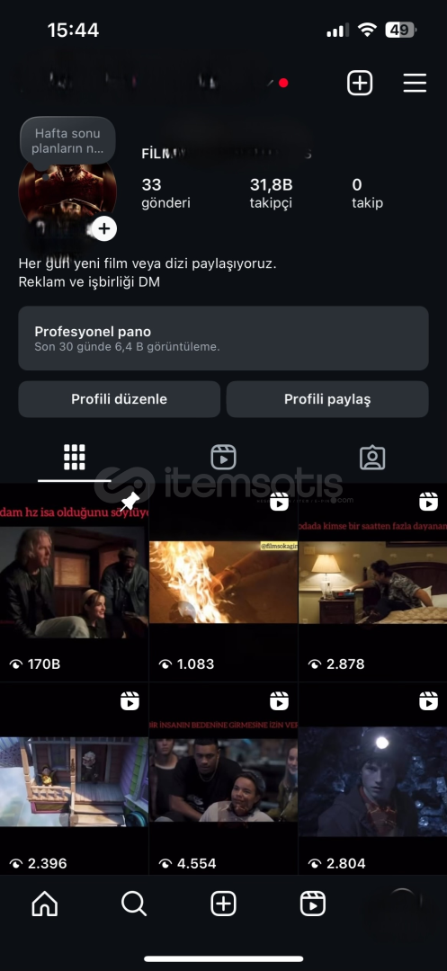 32 K FİLM HESABI yaklaşık 1 ay öncesinde aktif olarak kullanılan bir hesaptır. yani gelen takipçiler tam olarak pasife geçmemiştir. keşfete düşme potansiyeli vardır. ilk 1 hafta destek verilicektir.