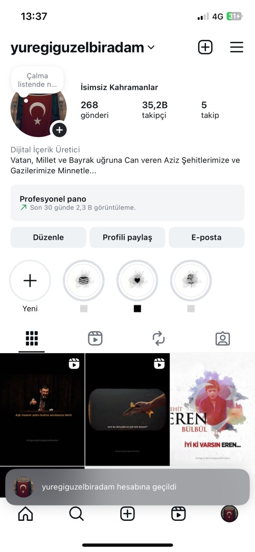 hesap 2022 yılında açıldı açıldığı yıl 30 k bot atıldı ömürlük garantili asla düşmez 3 senedir düşüş yok ilgilenip büyütebilirsiniz bi ara büyümüştü ilgilenemedim düştü eski paylaşımlardan anlaşılır. Hemen teslim ederim süreklide iletişim halinde oluruz ban spam veya takipçi düşmelerinde para iadesi yaparım kefilim hatasız hesaptır.