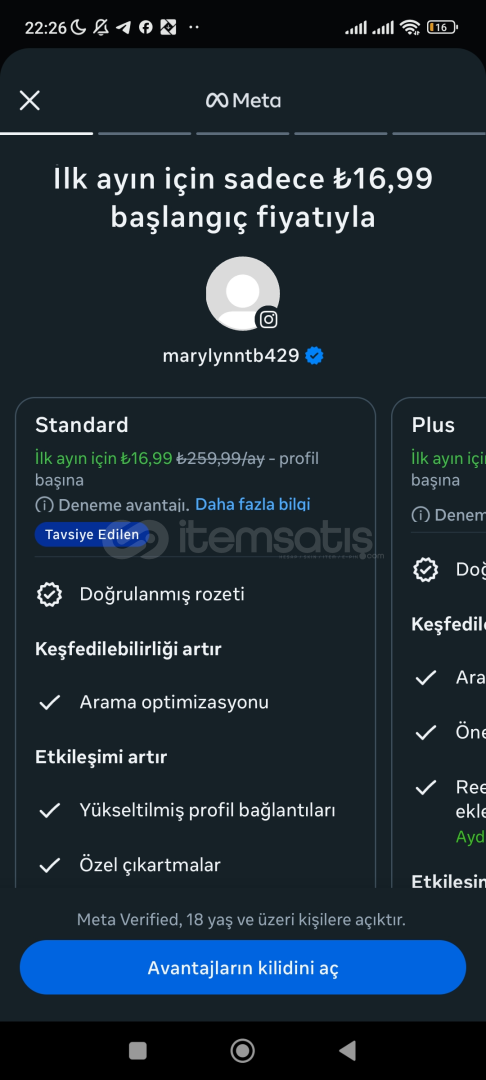 ilk ay sadece ve sadece 16.99₺den metaya sahip olabilirsiniz.
