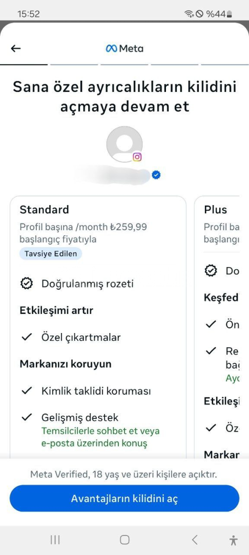 • Meta Verified için almak isteyen kişinin ilk işi: ' Abonelik satın almak olmalıdır'.