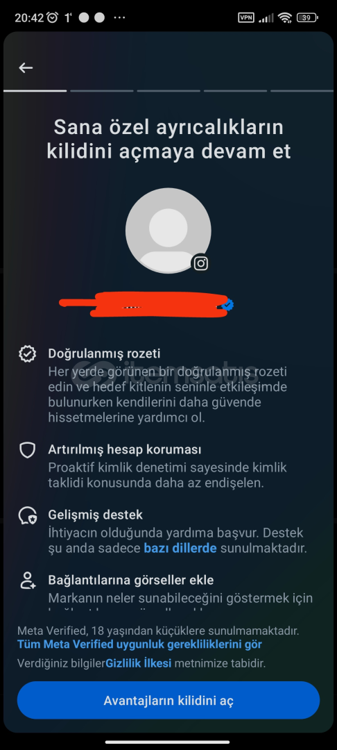 380 TAKİPÇİLİ META VERİFİED HESABI