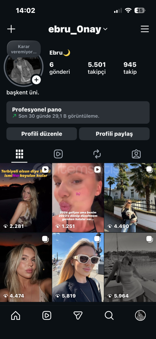 5K Takipçi Aktif Kız Hesabı