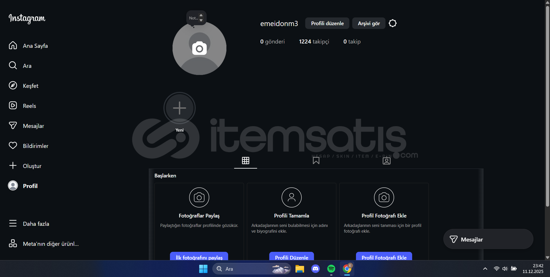 • İlanı satın aldıktan sonra , 1.000 Takipçili bir Instagram hesabı teslim edilir.
