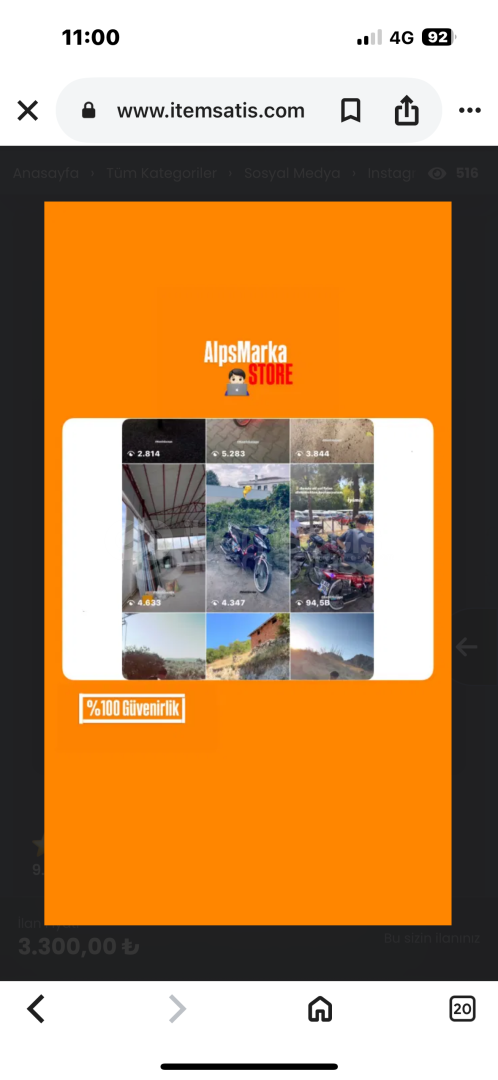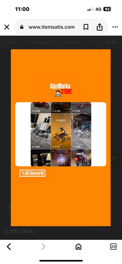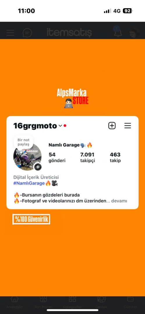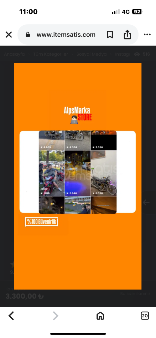 DeğerlendirmeSoru & CevapMERHABALARHESAP ADI : 16GRGMOTOTAKİPÇİ SAYISI : 7080AÇIKLAMA :HESAP 2 AYDIR SAYFA OLARAK KULLANILIYOR VE AKTİFLİGİ POTANSİYELİ ÇOK İYİ DURUMDA FOTOGRAFLARDA KEŞFET SONUÇLARI GÖSTERİLMİŞTİR HESAPTA KAPANMA VEYA GERİ ÇEKİLME RİSKİ YOKTUR GÜVENCEMİZ VARDIR HESABI İSTER KİŞİSEL İSTER SAYFA OLARAK KULLANAB...