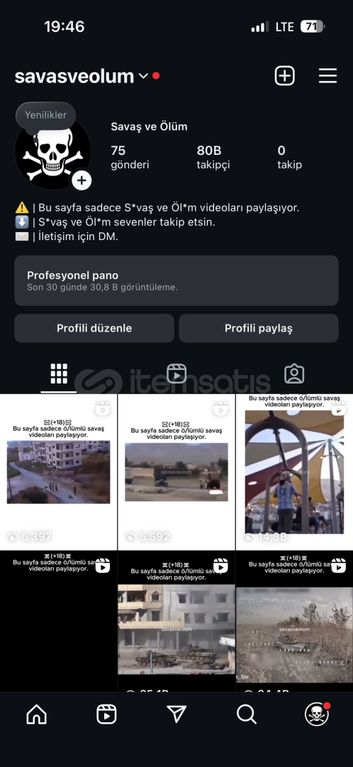 Daha öncesinde aktif olarak kullanılmakta olan Savaş içeriklerinin paylaşıldığı hesabım satıl...