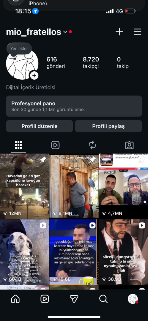 8.700+ Takipçili – 24 Milyon Görüntülemeli Aktif Instagram İçerik Üretici Hesabı