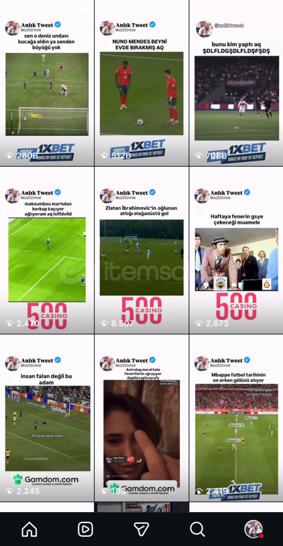 +4000 Satış güvencesi ile ; Hesapta 9000 Takipçi bulunmaktadır.Hesapta izlenme sayısı yüksek birçok video bulunuyor.Aktif futbol mizah sayfasıdır.Hesap size devredildikten sonra tüm sorumluluk size aittirHesap ile ilgili sorularınızı özelden yazabilirsiniz