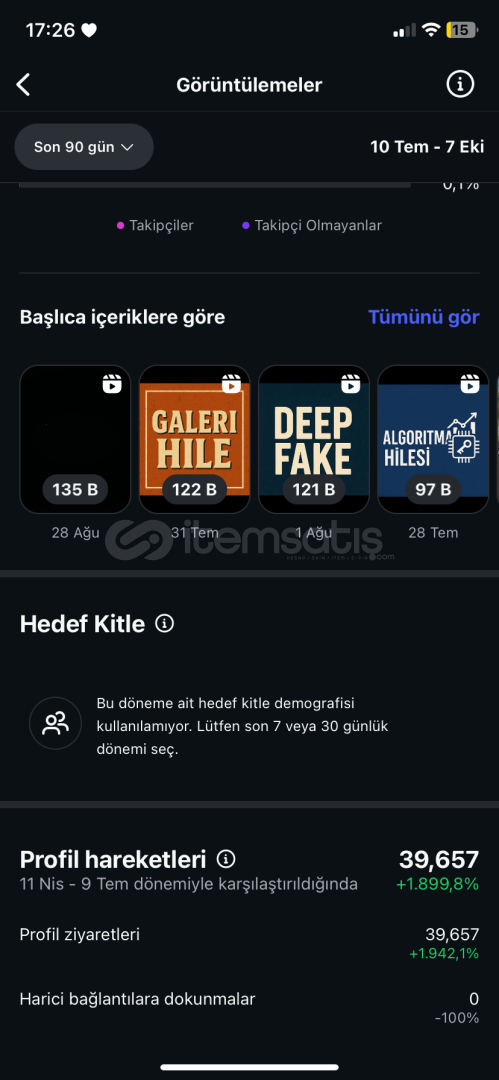 Merhaba Sayfamızın takipçi kitlesi kalitedilir Etkileşimi boldur sayfada Hiç bir şekilde bot Sahte etkileşim kullanılmamıştır İçerikleri mevcuttur Tamamen emek hesabıdır Yanında Telegram kanalıda verilecektir 3447 Üyeli Sohbet kanalıyla beraber!FİYAT TEKLİFİ VERMEK İÇİN LÜTFEN MESAJ GÖNDERİNİZ