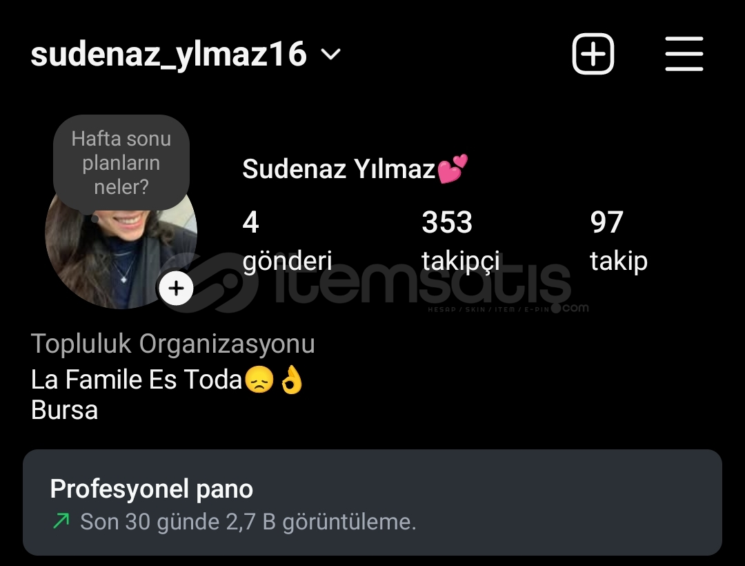 ⛔️Otomatik teslimat ⛔️2017 kurulumlu 353 takipçili 4 yeni gönderisi olan kadın hesabı (fotograflar çogaltılabilir)