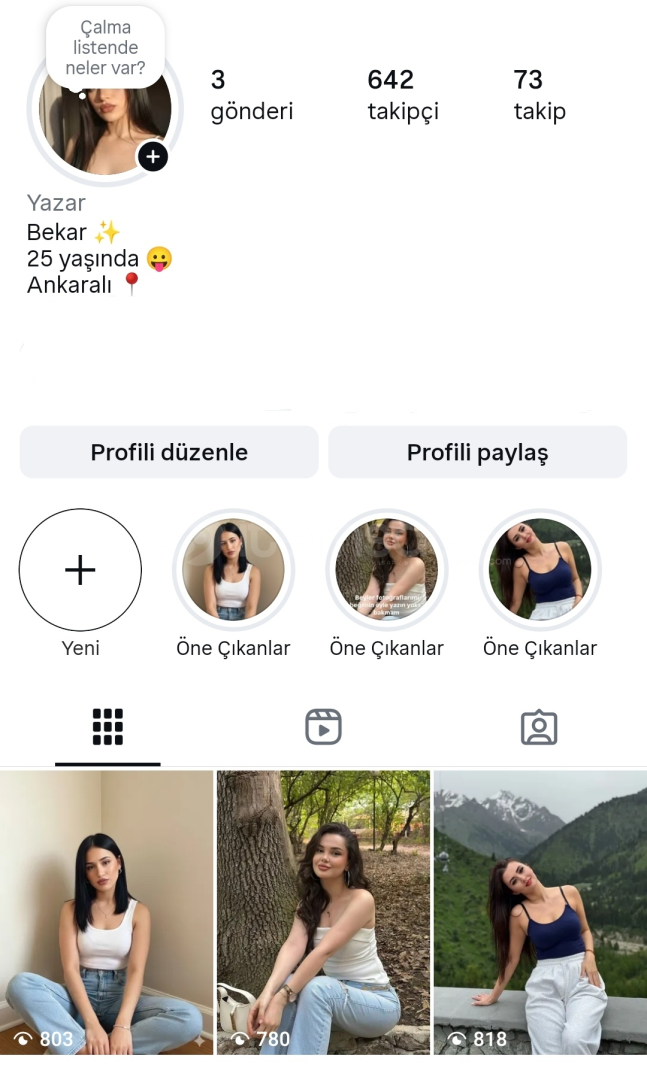 Aktif Kız Hesabı+500 Hikâye (Organik)