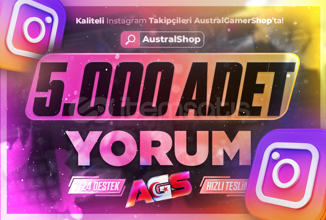 AustralGamerShop Güvencesi İle✅Gönderim satın aldığınız anda başlatılmaktadır gönderim süresi sistem yoğunluğuna bağlı olarak değişebilmektedir.✅30 Gün Garantili Instagram 5000 Yorum teslim edilir.✅Teslimat saatleri içerisinde en kısa sürede başlatılır.✅Öngörülen düşüş %15-%20 arasındadır garanti s...