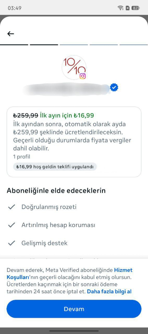 • META VERIFIED için almak isteyen kişinin ilk işi: ' Abonelik satın almak olmalıdır'.