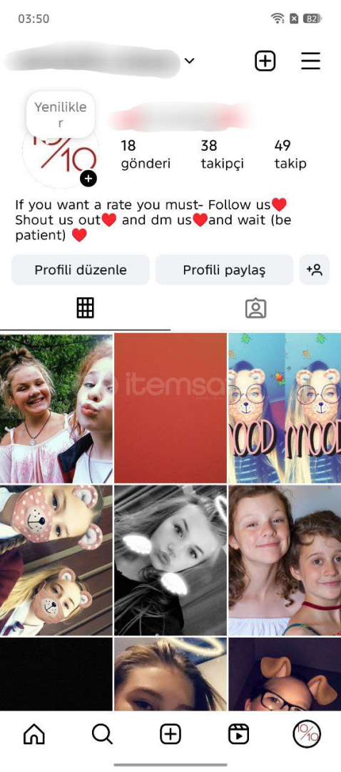 Paylaşımların hepsi 2018 yıllarında paylaşılmış ozamandan bu yana afk kalmış. +18 post var.META VERIFIED için alacak kişinin, abonelik satın aldıktan sonra: (Hesapta herhangi bir değişiklik yapılmalıdır.)META VERIFIED için almak isteyen kişinin ilk işi: ' Abonelik satın almak olmalıdır'.Takipçiler ve etkileşimler doğaldır. Global ülke he...