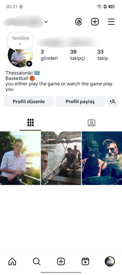 • Erkek profili 3 tane paylaşım var.