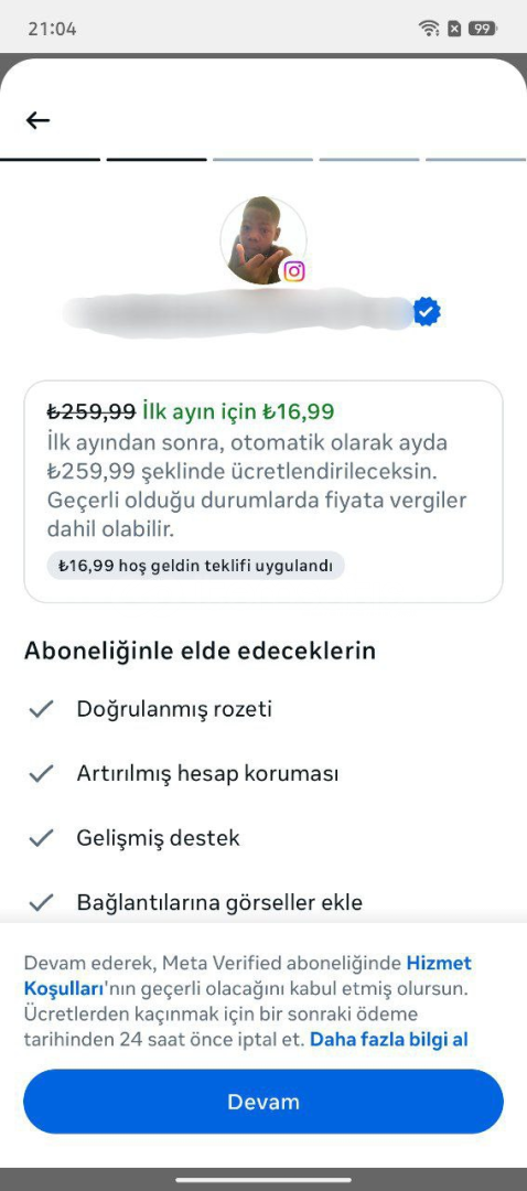 • META VERIFIED için alacak kişinin, abonelik satın aldıktan sonra: (Hesapta herhangi bir değişiklik yapılmalıdır.)