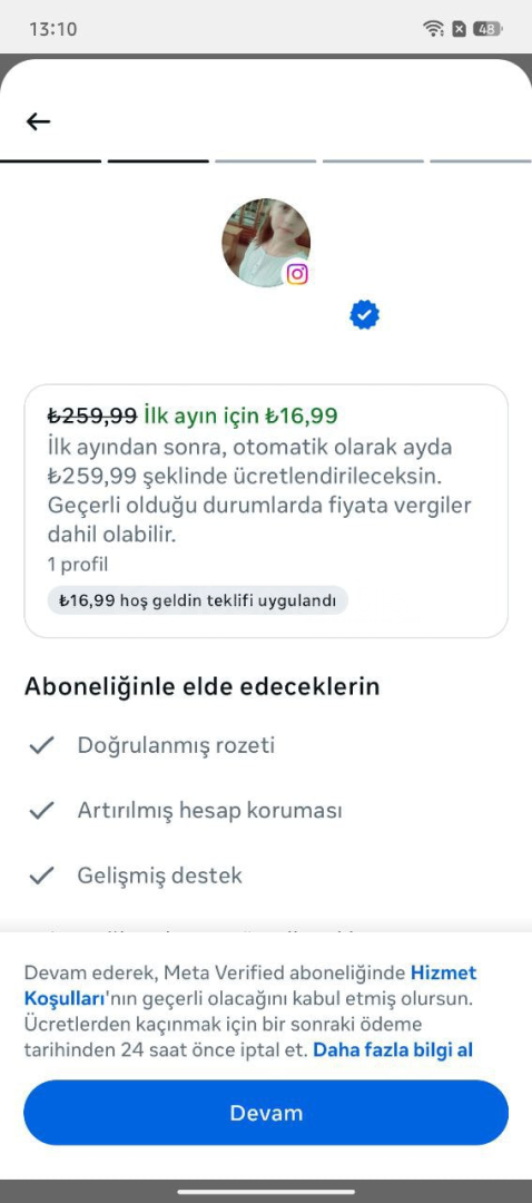 • META VERIFIED için alacak kişinin, abonelik satın aldıktan sonra: (Hesapta herhangi bir değişiklik yapılmalıdır.)