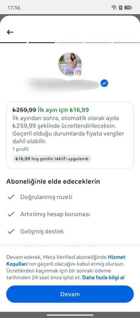 • Meta Verified için almak isteyen kişinin ilk işi: ' Abonelik satın almak olmalıdır'.