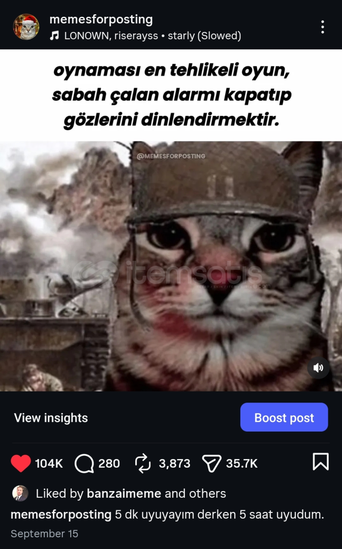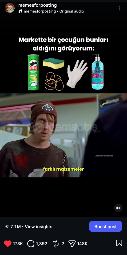 Hesabın 10dan fazla milyon izlenen videoları var. (fotoğraftakiler sadece bazıları) Keşfeti çok iyi. Konsepte bağlı kalarak düzenli gönderi atarsanız her videoyu tutturabilirsiniz. Aktifliği arttırıp hesabı teslim edeceğim. Hesap ismi: memesforposting