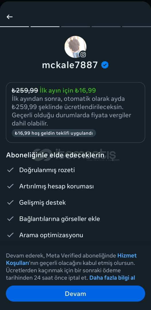 Hesapta case açıktır kolay kolay kapanmaz me meta açıktır mavi tık ilk ay için 16 tldir