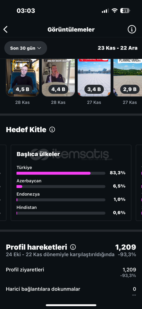 Merhabalar aylık tikli instagram sayfamı satıyorum satış sonrası sizinle iletişime geçeceğim fotoğraftaki etkileşimler 24.12.2025 tarihine ait iletişimde olursanız sevinirim.Hesapta 5-4-3 Milyon izlenen videolarda var aktif bir hesaptır takipçiler asla bot değildir bakarsanız anlarsınız.