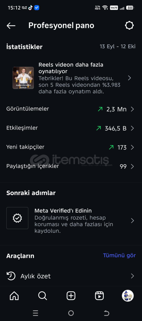 Dilerseniz hesabın videosunu size özel çekebilirim , anlık o esnada kaç like aldığını , görüntülenmeleri ve hesap detaylarının videosunu izleyebilirsiniz.
