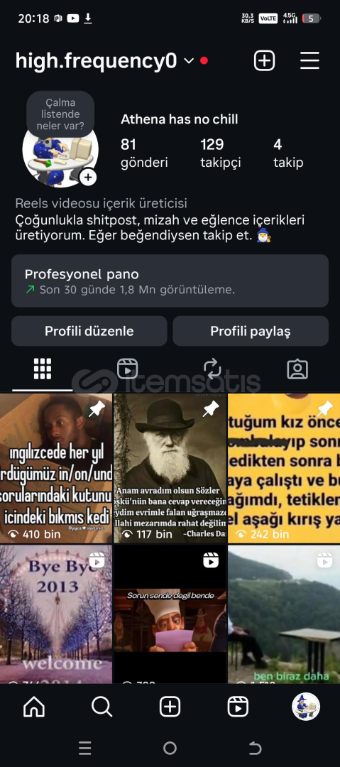 Hesap kurulum mailiyle beraber verilecektir.Hesapda 81 Post , 1.8 Milyon Etkileşim ve 130 takipçi mevcuttur.Hesap bot hesabı değildir , hesabın etkileşimleri gerçek hesaplardır , hesabın her postu keşfete düşüyor. 60k beğenilmiş postu mevcut.Hesaba anlık olarak her gün 200.000 - 500.000 arası etkileşim geliyor.Dilerseniz hesabın videosunu size özel çekebilirim , anlık o esnada...