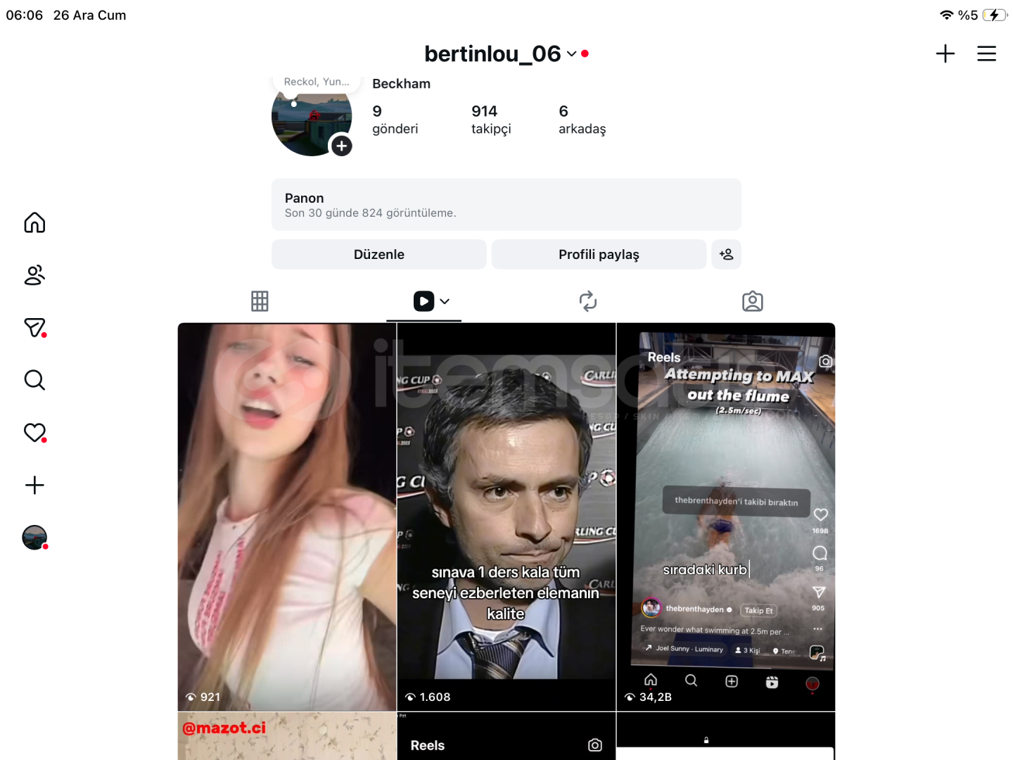 Hesap keşfeti açıktır mail değişilir şifre değişilir UYARI- video atınca neden izlenilmiyor derseniz attığınız video saçmaysa veya hemen keşfet yok derseniz keşfet için yeni yeni videolar atarak gelişebilirsiniz YA yedek YADA mainlik hesab alana hayırlı olsun bilgi için dm HESABA BOT BASILMAMIŞTIR VE İZLENME VE BEĞENİDE
