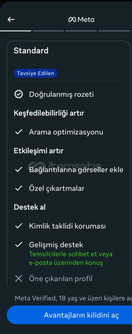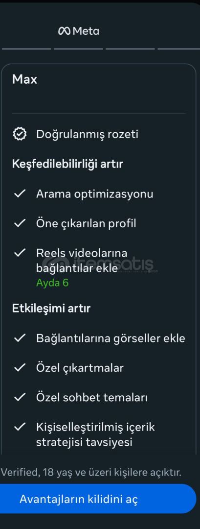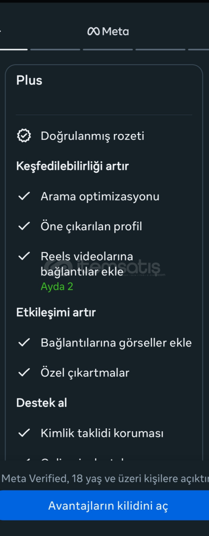 Not: Hesaplarda Meta Verified özelliği aktif durumdadır. (Hesaplar mavi tikli değildir, ancak ödeme yapılarak mavi tik alınabilir durumdadır.)