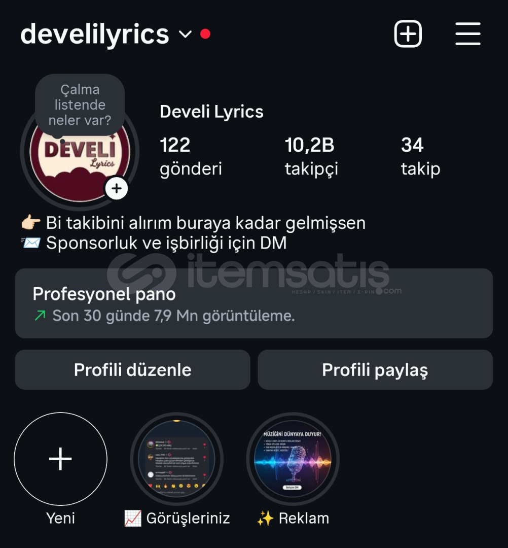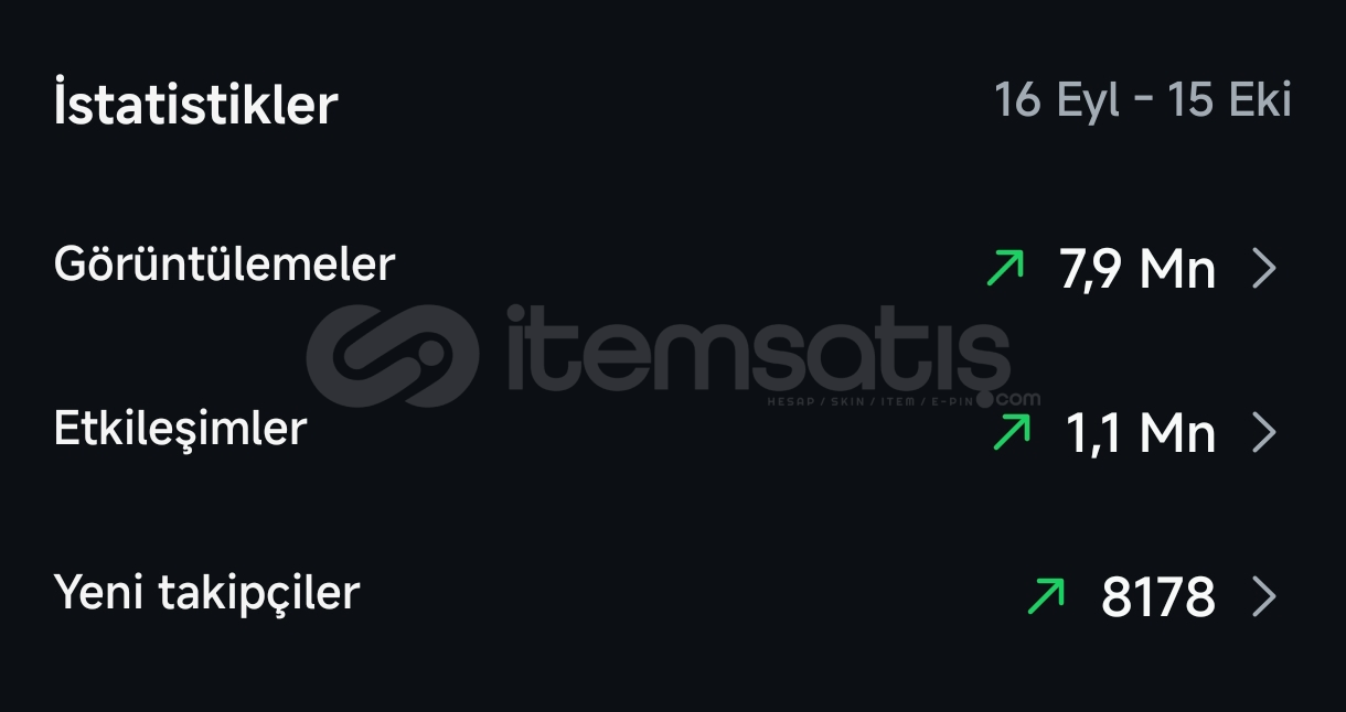 Yeni Kasılmış 10.2K Takipçili Keşfeti Full Açık HesapSon 30 Günde Görüntülenme: 7.900.887 (7.9mn)Tertemiz ilk Sahibinden Satılık Hesap kendim açtım kısa sürede büyüttümHesap Gelir Sağlıyor! kısa sürede 2k yakın gelir sağladım kanıt verilir.