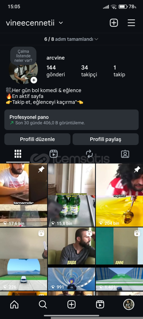 Hesap 3 gün once açılmıştır keşfetti açıktır 406bin kişi panoda 144 videosu vardır ister aynı konsepte ilerleyin ister başka keşfetti açık 3 günde bu kadar izlenme isteyene detaylı atarım izlenme etkilesimleri