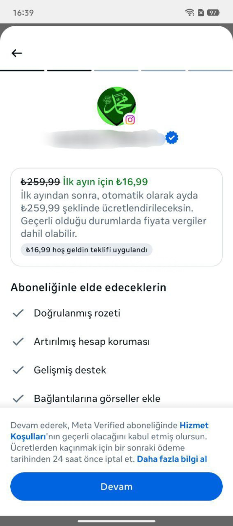 • META VERIFIED için alacak kişinin, abonelik satın aldıktan sonra: (Hesapta herhangi bir değişiklik yapılmalıdır.)