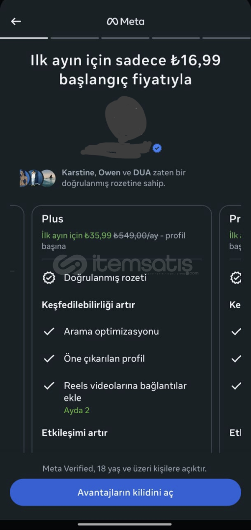 Hesapta meta plus meta premium ve meta max paketleri vardir