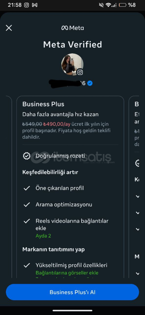 ❗ Meta businesli kız hesabı ( aktif)📌 Hesap özenle hazırlanmış, saatlerce emek verilmiştir.👩‍💼 Gerçek kız profili görünümündedir, tamamen özgün içerik kullanılmıştır.🚫 Ortaklıkta dolaşan görseller kesinlikle kullanılmamıştır.📈 Hikâye görüntülenmesi: 100 - 150 aras&...