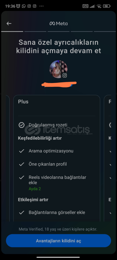 Hesap 2015 kurulumludur.Türk kız hesabıdır Meta plus açıktırKurucu mail verilir.mail kullanıcı adı mail şifre kullanıcı adı şifre olarak teslim edilir.Sorunsuz hesaptır.133 takipçi vardır hesapta.Toplu alım için benle iletişime geçiniz.Organik hesaplardır çoğunun keşfeti açıktır.