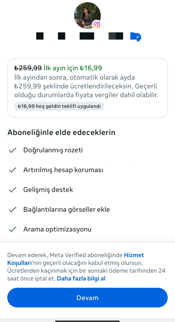 💸 Meta ilk ay: 16,99 TL