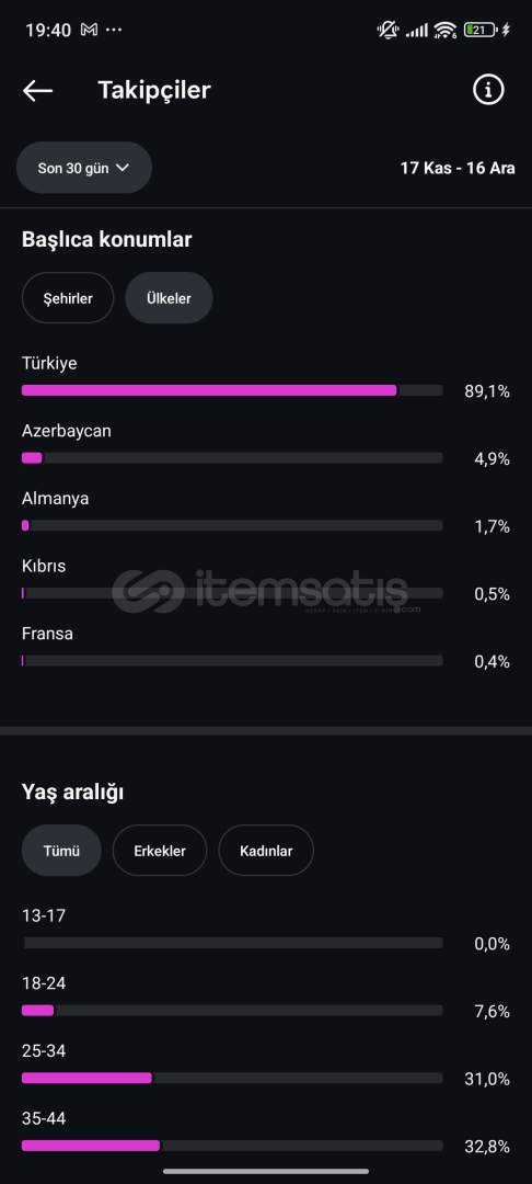 İlk kurucu epostasiyla teslim edilcek Aktif keşfeti açık sorunsuz hesap Hikâye izlenme 5/8bin aradi görmekte 17 milyon izlenmiş videolar mevcut