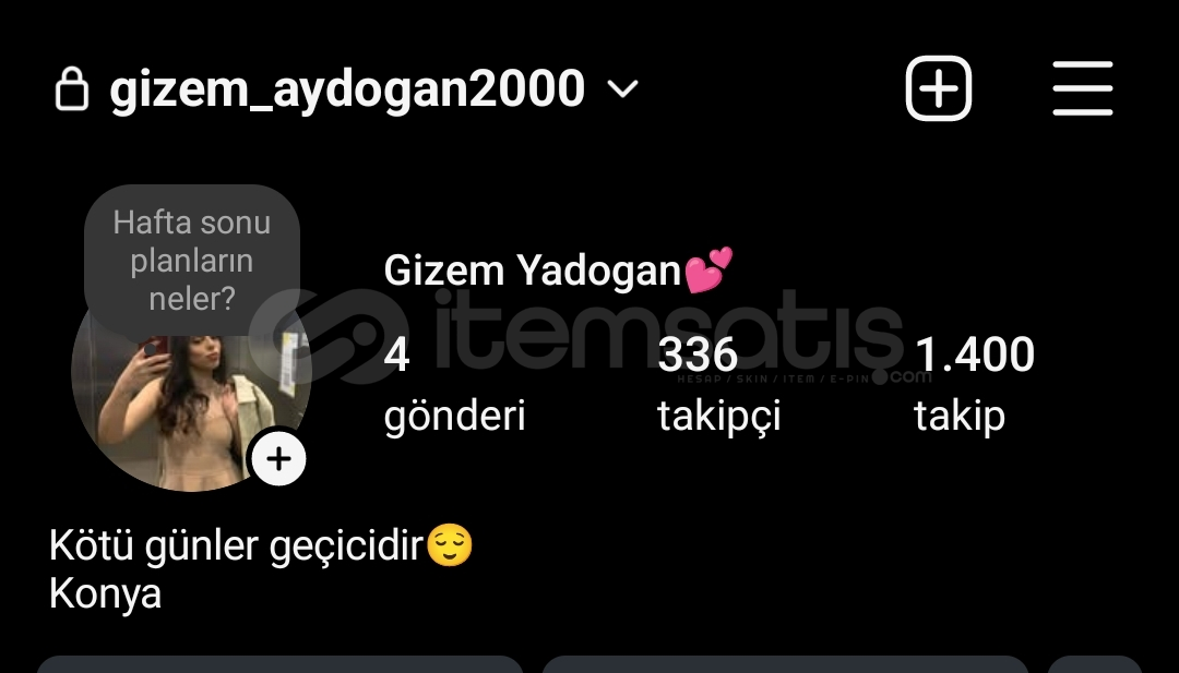 ⛔️Otomatik teslimat ⛔️2017 kurulumlu 336 takipçili 4 yeni gönderisi olan kadın hesabı (fotograflar çogaltılabilir)