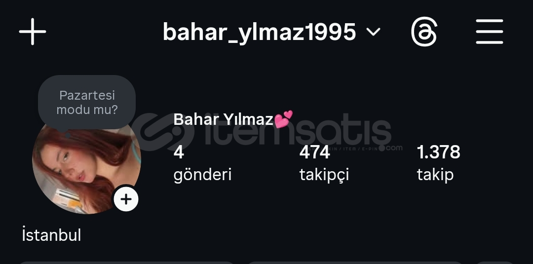 ⛔️Otomatik teslimat ⛔️2017 kurulumlu 474 takipçili 4 yeni gönderisi olan kadın hesabı (fotograflar çogaltılabilir)