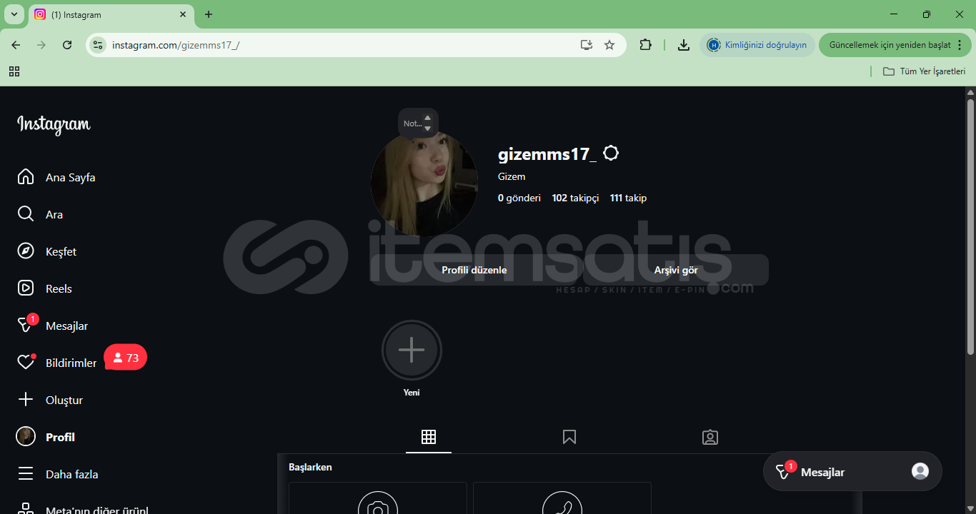 arkadaşlar önce sunu belirtmek isterim hesap benimdir yeni açılmıştır eğer ben hesabı verdikten sonra banlanırsa iade yapmıyorum ve hiçbir sorumluluk kabul etmiyorum temiz hesaptır eğer takipçisini yükseltmemi isterseniz takipçisini yükseltip satabilirim fakat fiyat artışı olur BOT DEĞİLDİR KENDİM KASTIM!!!SORULARINIZ VARSA DM GELEBİLİRSİNİZ