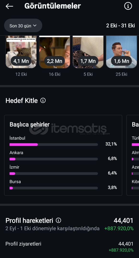 Hesap Durumu : Organik %97Türk kitleHesap Takipçi Sayısı : 7KAktiflik Durumu : AktifHesap İçerik ve Hedef Kitlesi : BELGESEL KONSEPT %73 erkek kitleStory : 500-1.000Hesap Fiyatı : 5 bin TLHesap Hakkında Ek Bilgiler : Hesap %97 Türk %73 erkek kitle ağırlıklıdırTek bir bot, tek bir sahte beğeni yoktur. Her gönderi için capcutta oluşturduğum hazır şablonu kullanıyorum. Her reels editl...