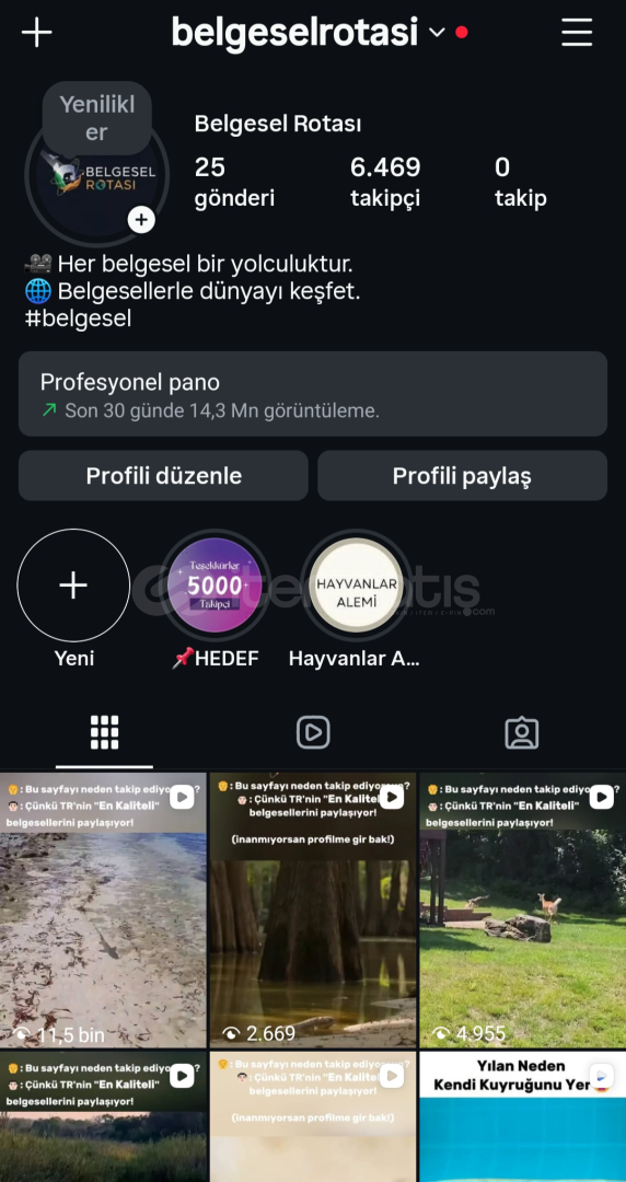 Hesap İçerik ve Hedef Kitlesi : BELGESEL KONSEPT %73 erkek kitle