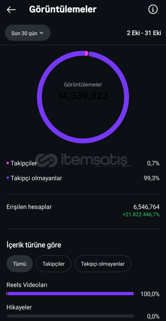Takipçiler sadece bir iki reelsten gelmiyor hemen hemen her gönderi keşfete düşüyor ve yüzbinlerce izleniyor. 5 6 tane milyon üstüne çıkan reels var.