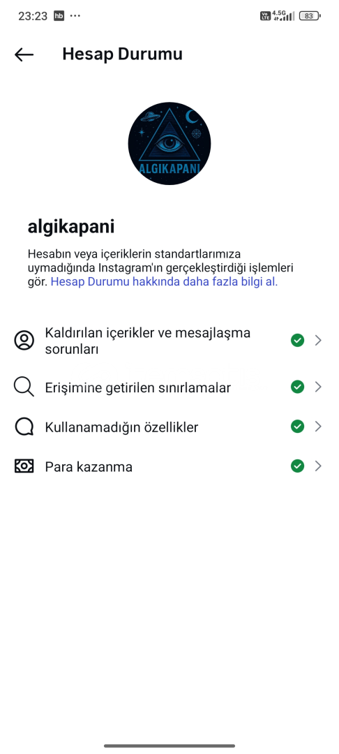 🔹 Hesap Durumu Temiz (kaldırılan içerik yok)