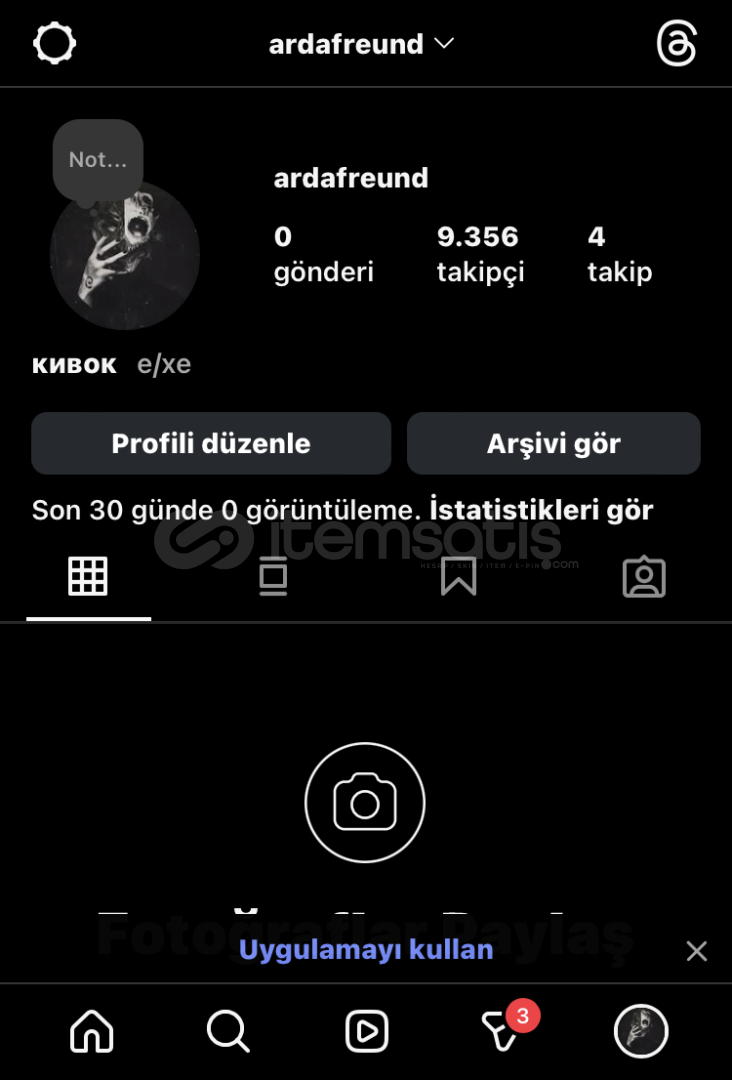 (İtemSatış satış temsilcisi, satış danışmanı v.b. adlar altında site üzerinden satış yaptığınıza dair özel mesaj gönderen kişilere inanmayın ve bu tarz durumlarda lütfen canlı desteğe bağlanarak durumu bildirin.)