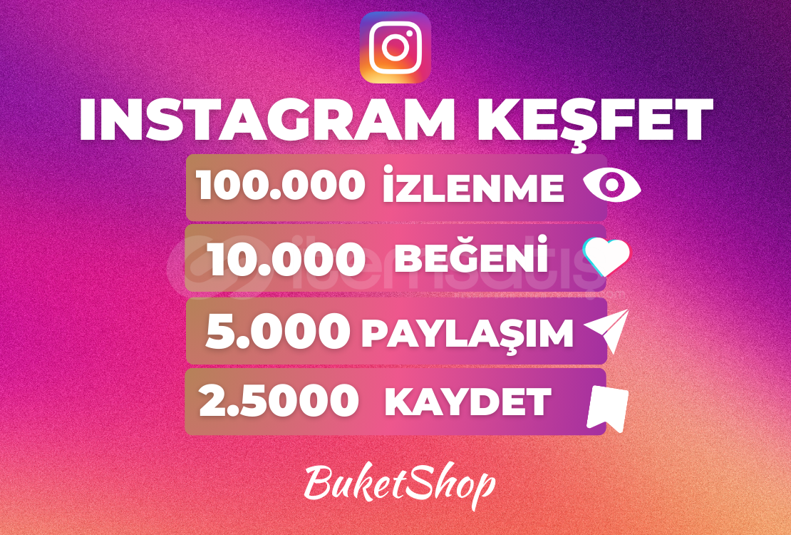 🚀 BuketShop Instagram Keşfet Paketi-  ✔️ %100 organik ve gerçek etkileşim ✔️ Keşfet algoritmasında etkili sonuçlar📦 Paket İçeriği:➕ 100.000 İzlenme ➕ 10.000 Beğeni ➕ 2.500 Kaydetme ➕ 5.000 Paylaşım-  Tüm servisler yüksek kaliteli ve güvenlidir. Gönderilerinizin keşfete düşme olasılığı ciddi ...