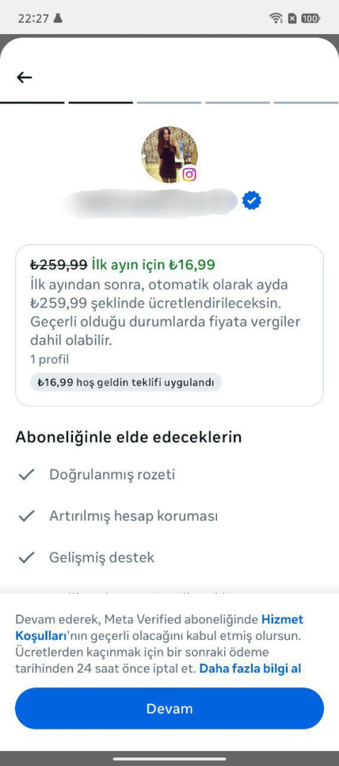 • META VERIFIED için alacak kişinin, abonelik satın aldıktan sonra: (Hesapta herhangi bir değişiklik yapılmalıdır.)