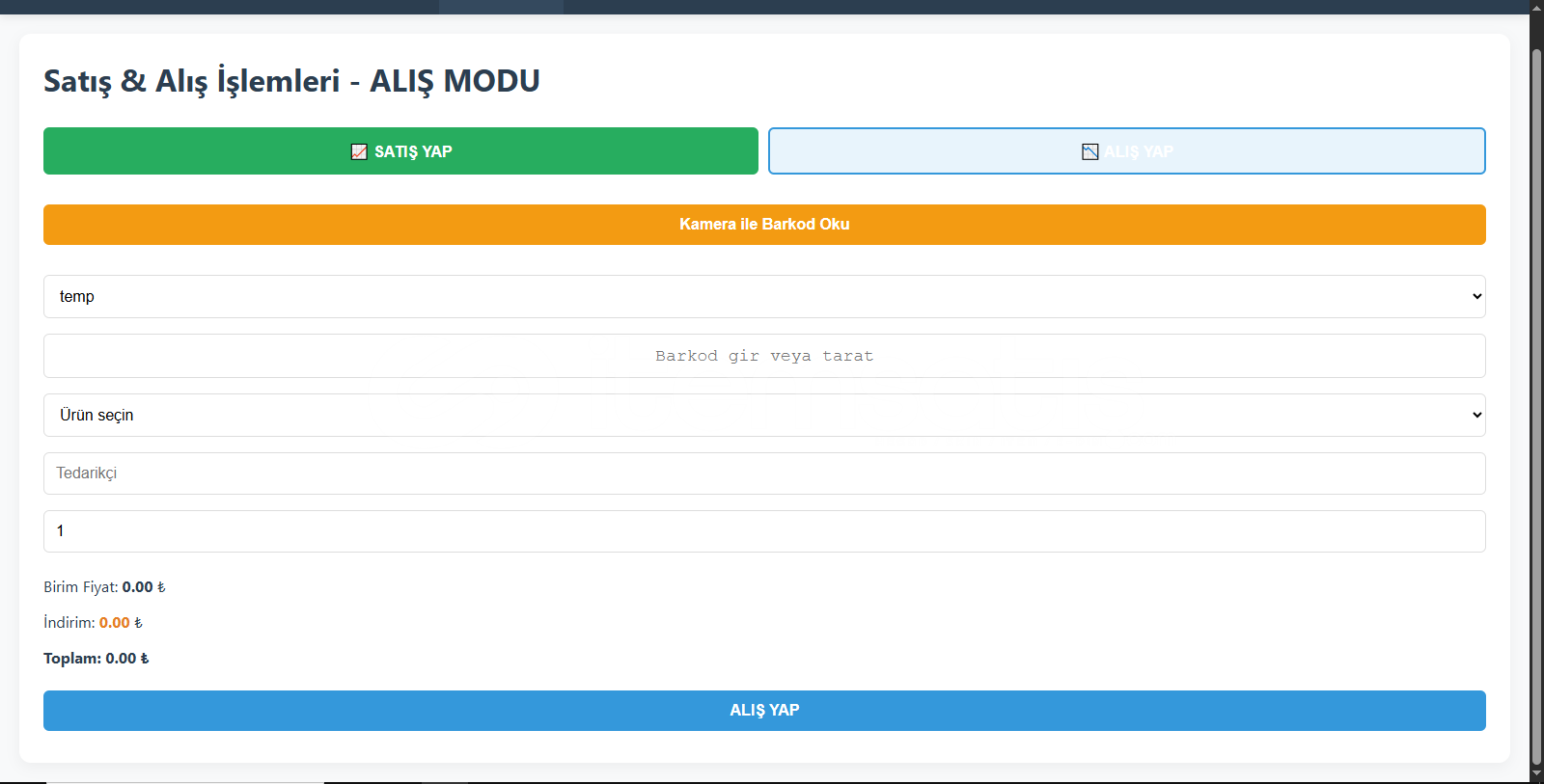 • Tedarikçi adı, stok adedi ve giriş fiyatı ile profesyonel alış kaydı oluşturun.