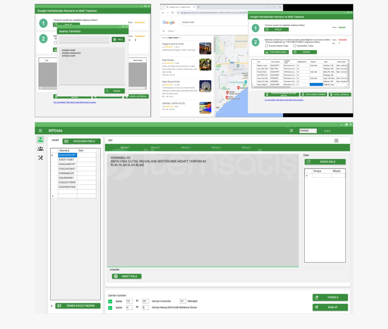 • Örnek: istanbul araç kiralama firmaları dediğinizde tüm numaraları ve e-mailleri çeker ve size Exel olarak verir.