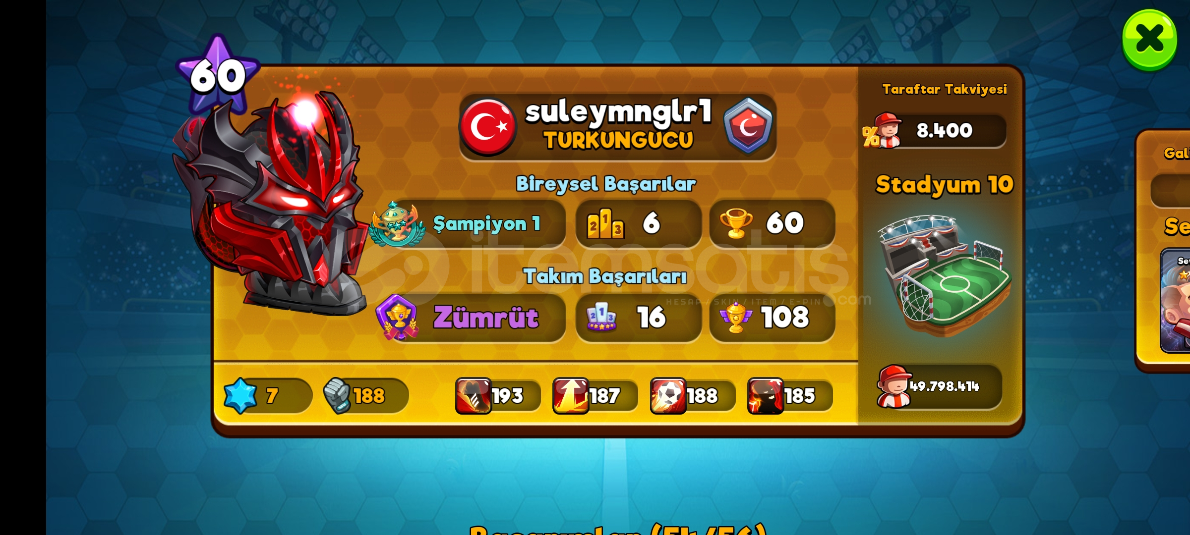 Emek verilmiş bir hesap Hesap alacağız ondan satıyoruzSüper güç full1 aylık premium üyelik devam ediyorPazarlık yok maalesef 🙂
